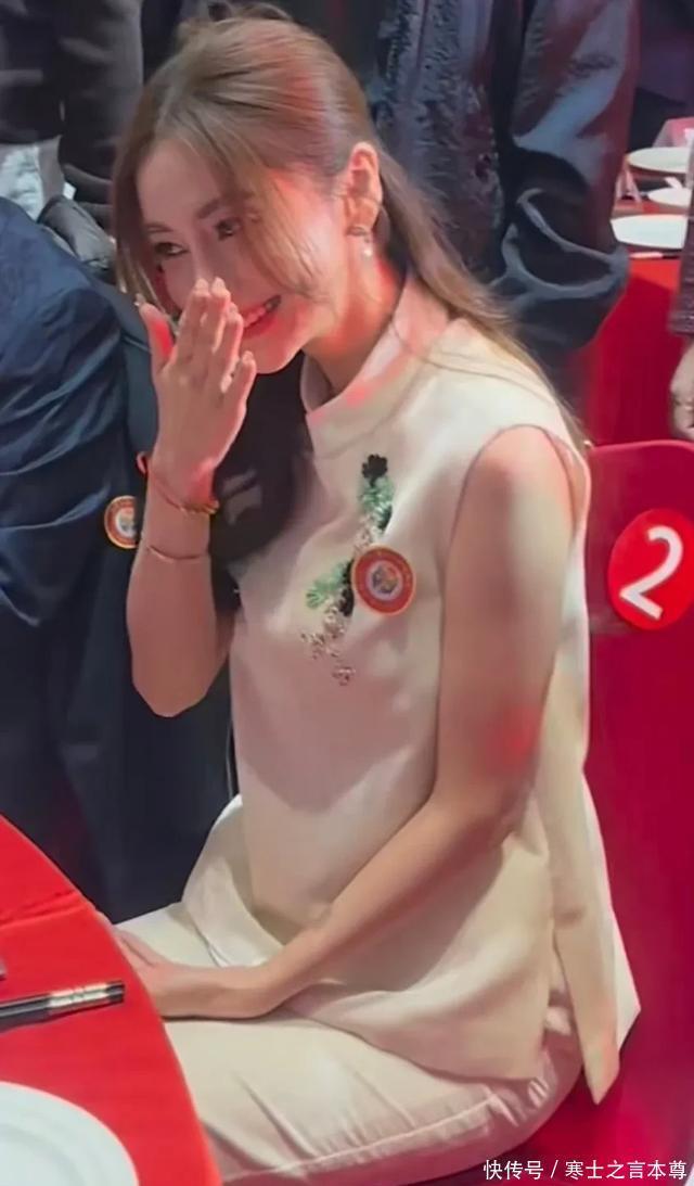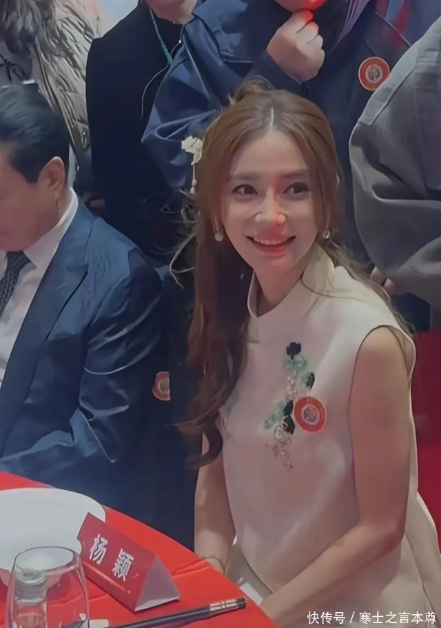 这次晚宴不同于其它礼服,杨颖选择了一件新中式服装,看起来温婉大气又温柔,打扮完美贴合活动主题。 杨颖坐在桌上认真听着身边长辈说话,十分乖巧,被夸了还害羞地捂着嘴笑。